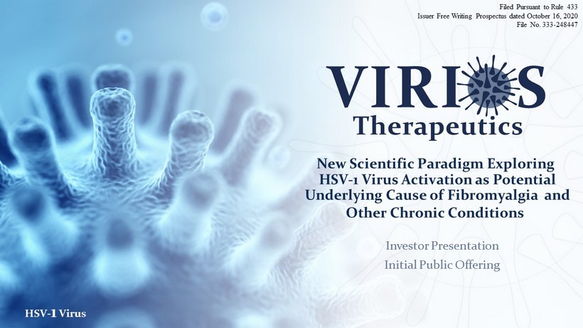 HSV - 1 Virus New Scientific Paradigm Exploring HSV - 1 Virus Activation as Potential Underlying Cause of Fibromyalgia and Other Chronic Conditions Investor Presentation Initial Public Offering Filed Pursuant to Rule 433 Issuer Free Writing Prospectus dated October 15, 2020 File No. 333 - 248447